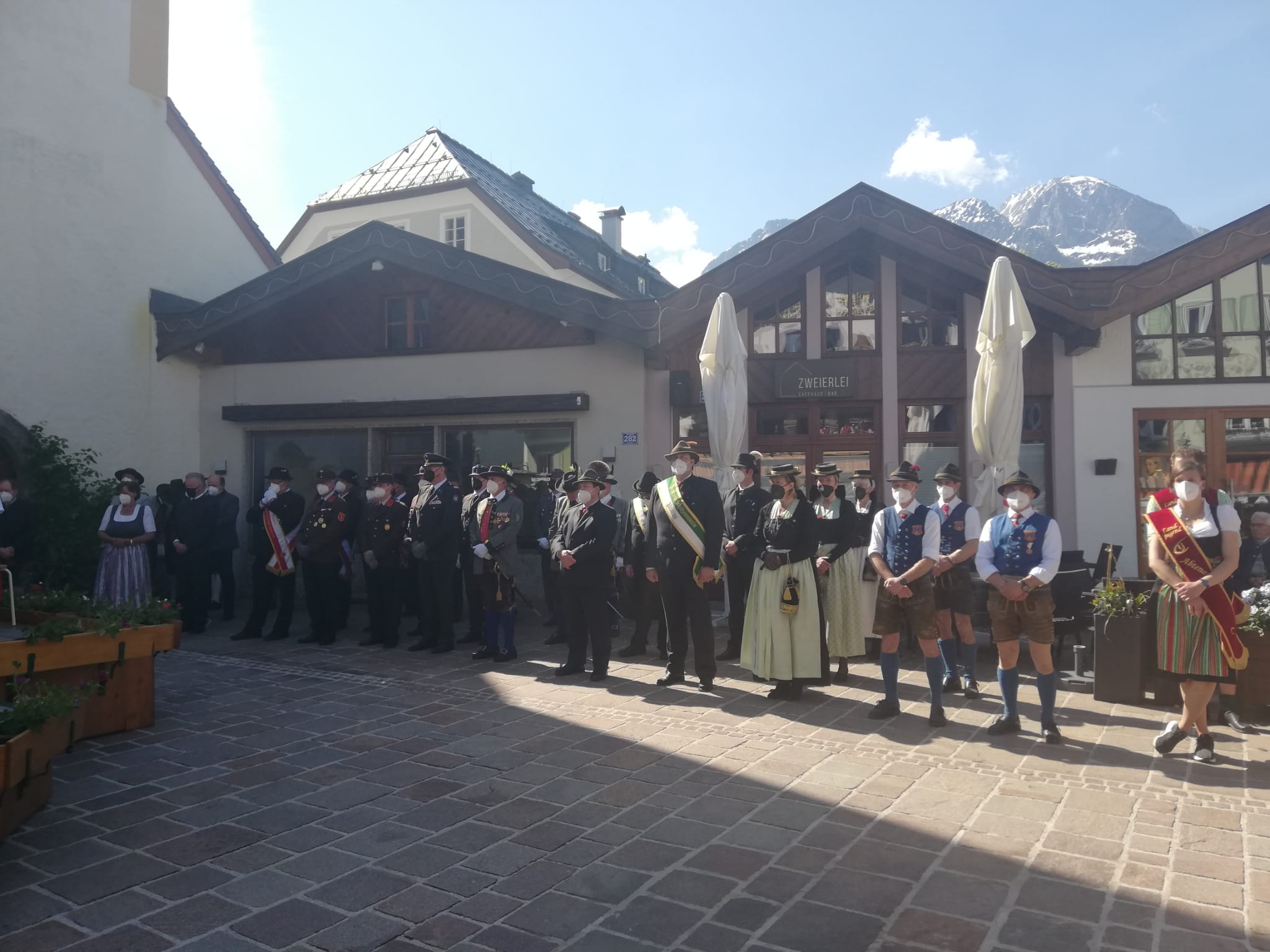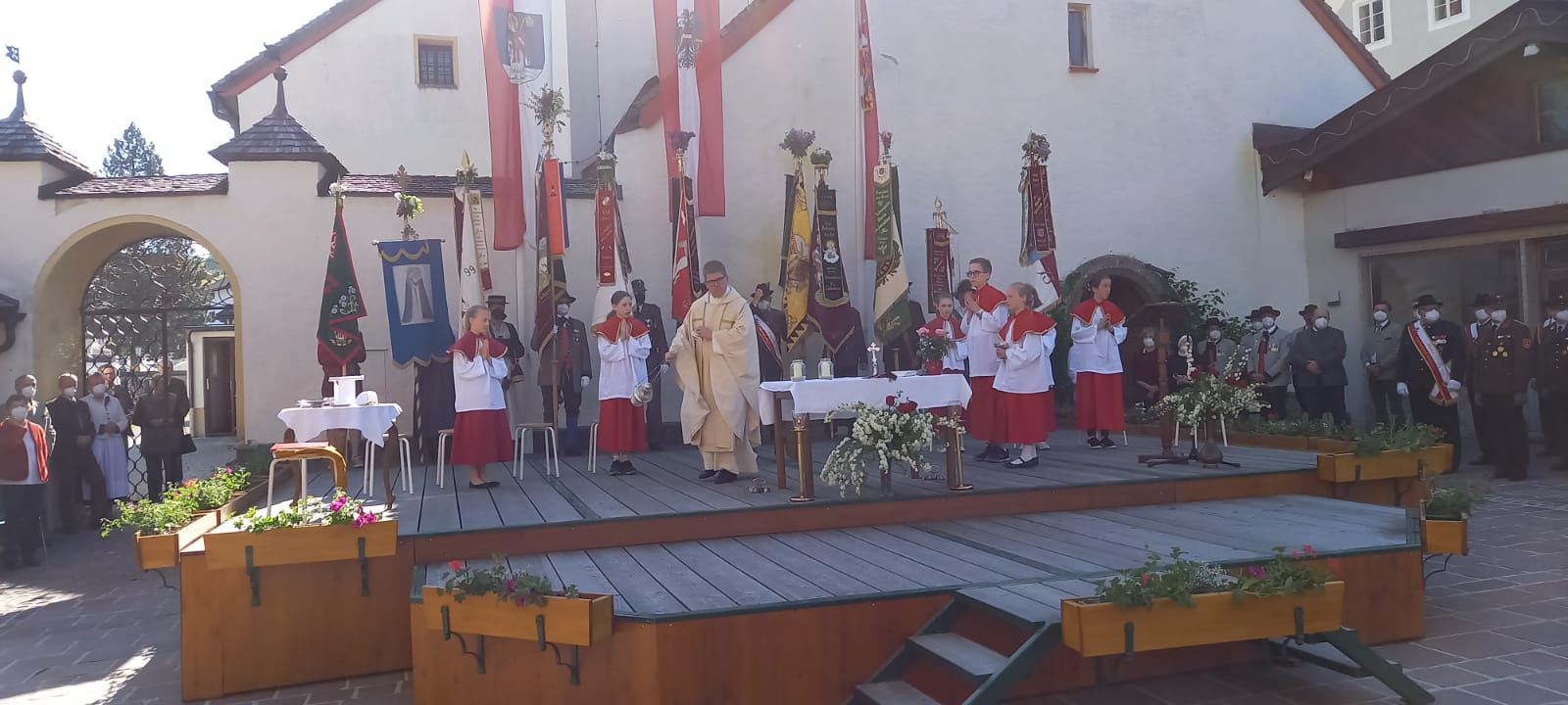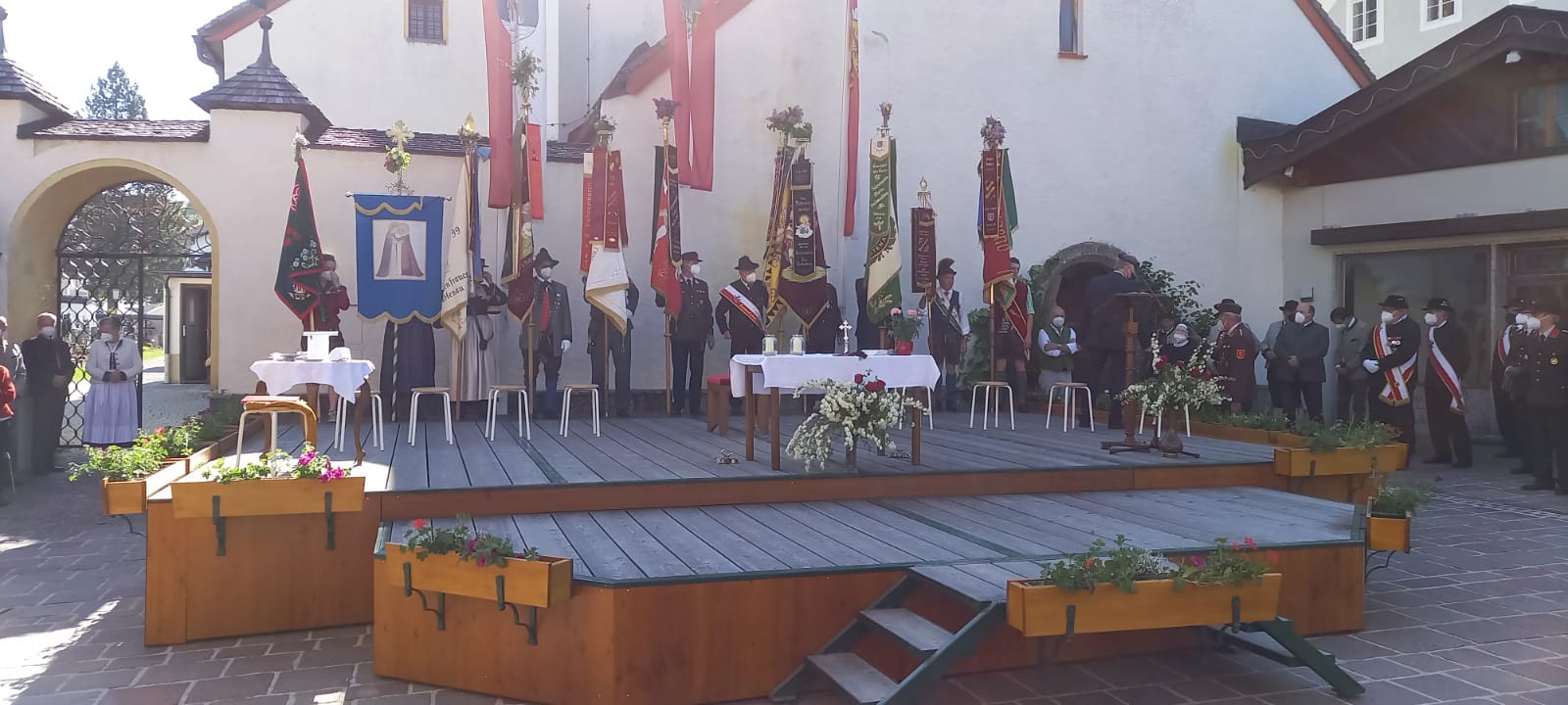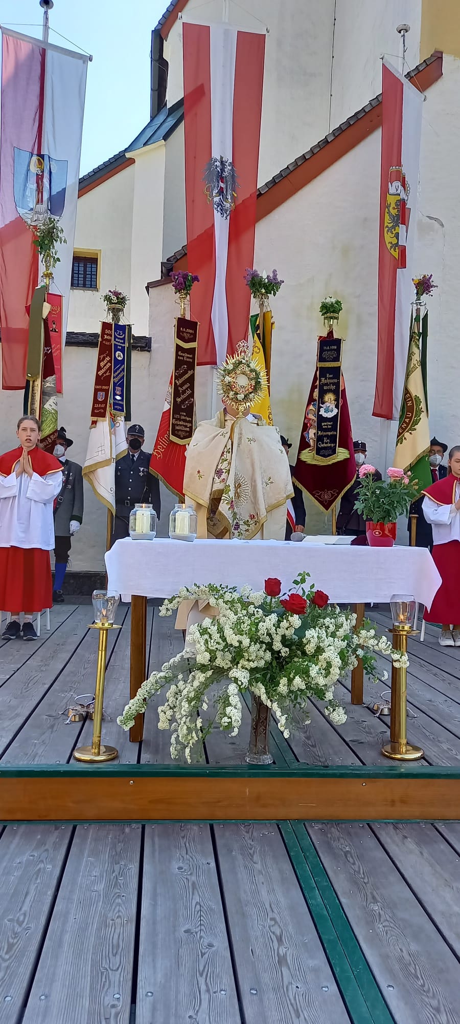 Nach über einem Jahr Stillstand bei den Ausrückungen konnte aufgrund der aktuell gültigen Coronamaßnahmen konnten zum Fronleichnamsfest die Vereine leider nur durch eine Fahnenabordnung vertreten werden.