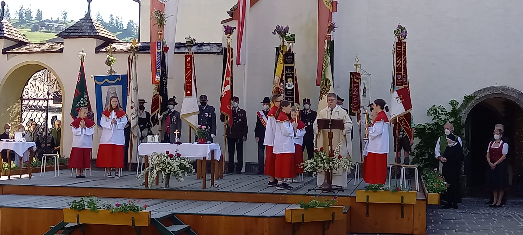 Unsere Fahnenabordnung, Hauptmann Christian Maier, Fähnrich Johann Schwarzenbacher, Fahnenbegleitung Matthäus Kronreif und Sebastian Thaler, konnten die Kompanie bei diesem Hochfest vertreten.